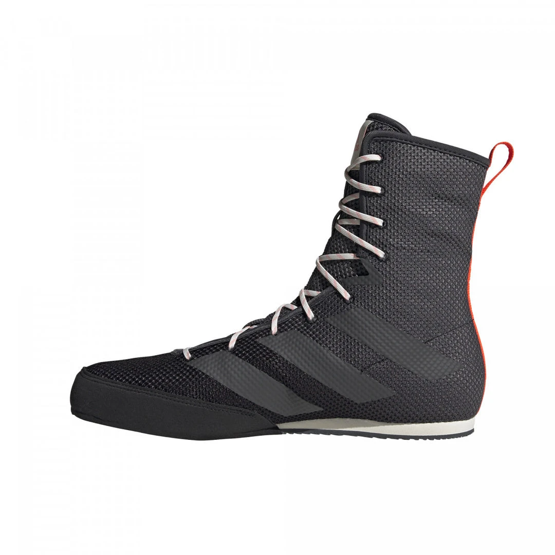 The adidas BOX HOG 3 – black is the “successor” of the old BOX HOG model, which had been for many years one of the bestselling boxing shoe on the European market. The BOX HOG also has very simple, light, and comfortable construction as the older model had. A huge improvement for HOG Plus is the new mesh material, which is very light, breathable, and comfortable. The sole os made of flexible rubber, which leaves no stain marks.