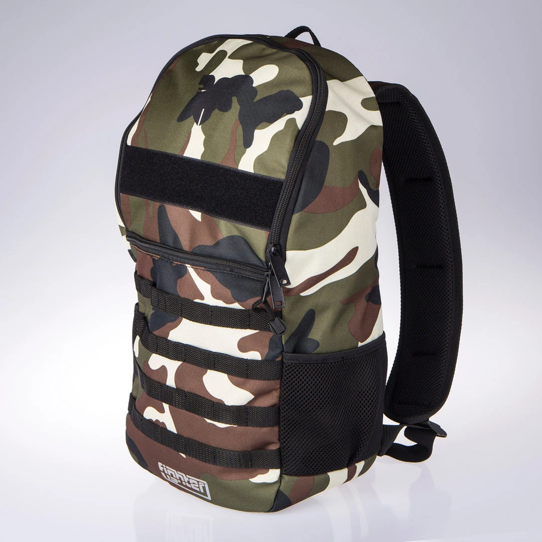 A necessity reflex element on the back of the backpack is in a form of a Fighter logo.