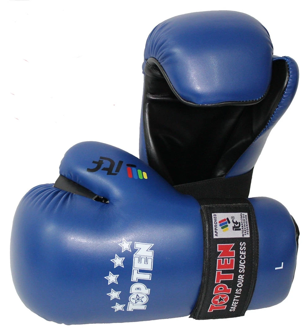 The official ITF Pointfighter gloves made of durable Nubuk artificial leather. A very light glove with a preshaped padding. Strap velcro closure.