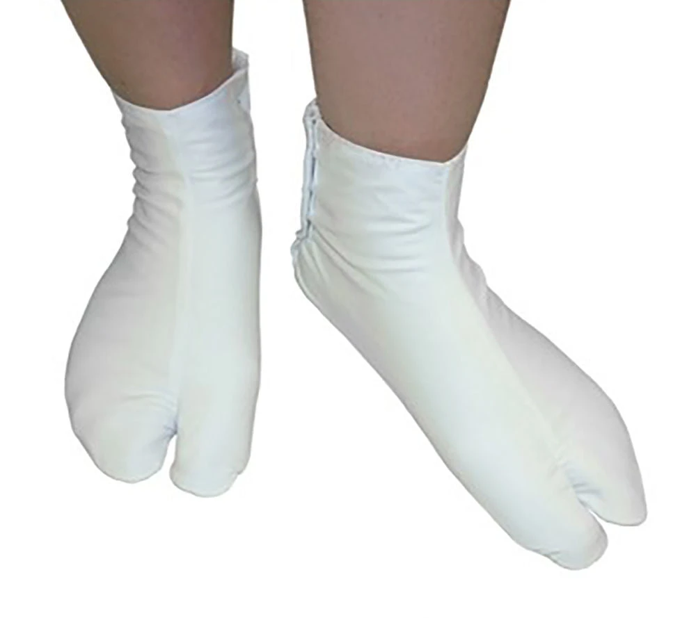 Many Japanese cultural activities including Budo utilise these traditional Tabi socks. These black cotton models are for indoor use only and feature a hook and eye fastener and a white cotton sole.