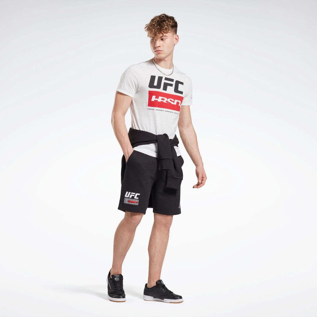 Show your respect for mixed martial arts at the highest level. The soft cotton and polyester French terry build of these men’s shorts offers familiar comfort for recovery days and downtime. A UFC logo stands out for authentic Fight Week style.