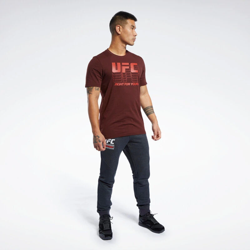Fight for yours. Share the intensity of mixed martial arts fighting in this men’s UFC t-shirt. A slim cut offers a sporty fit, while the all-cotton build ensures familiar comfort.