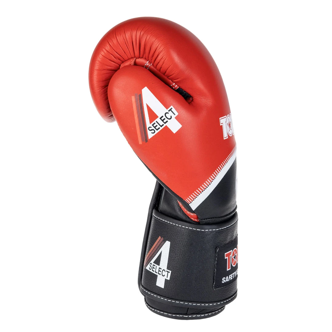 For all animal lovers among you, we also have our new “4select” boxing gloves in the real leather-free version. Otherwise, gloves # 2244 and # 2044 boxing gloves are the same in construction and also impress with their unique multi-layer padding. The EVA pads are based on the one-piece injected and already anatomically preformed IMF pad. Especially the clubface has been specially designed and promises you not only the best protection but also a new kind of power feeling. Each punch is recorded as an impulse, but its hardness is derived from your hands. The fit leaves nothing to be desired. The 4select boxing gloves adapt to your hands individually and are in the weight ranges 10/12/14 / 16oz comfortable even in longer sessions wearable. The round design in 3 different colors gives the boxing gloves a casual and sporty look. Of course, the new “4select” logo should not be missing, besides the typical TOP TEN print.