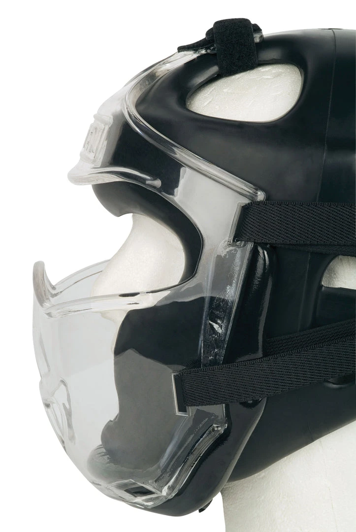 Made of virtually indestructible polycarbon, this mask enables a fighter with a face injury to continue his training or be used to add extra face protection. Allows 100% vision and doesn’t fog up.