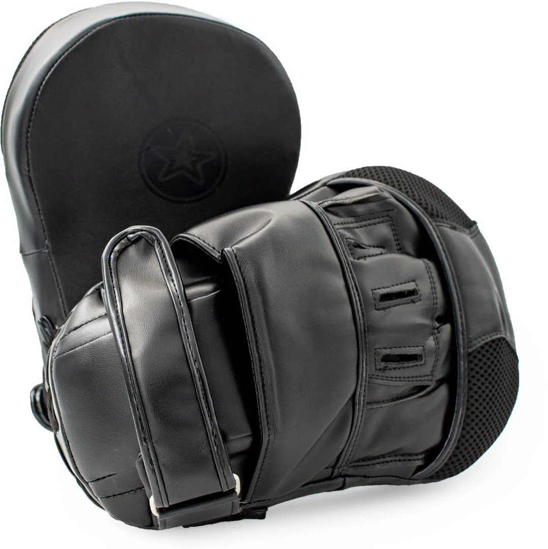 Focus mitts with shaped high density foam padding with palm contour pad. Made of genuine heavy leather.